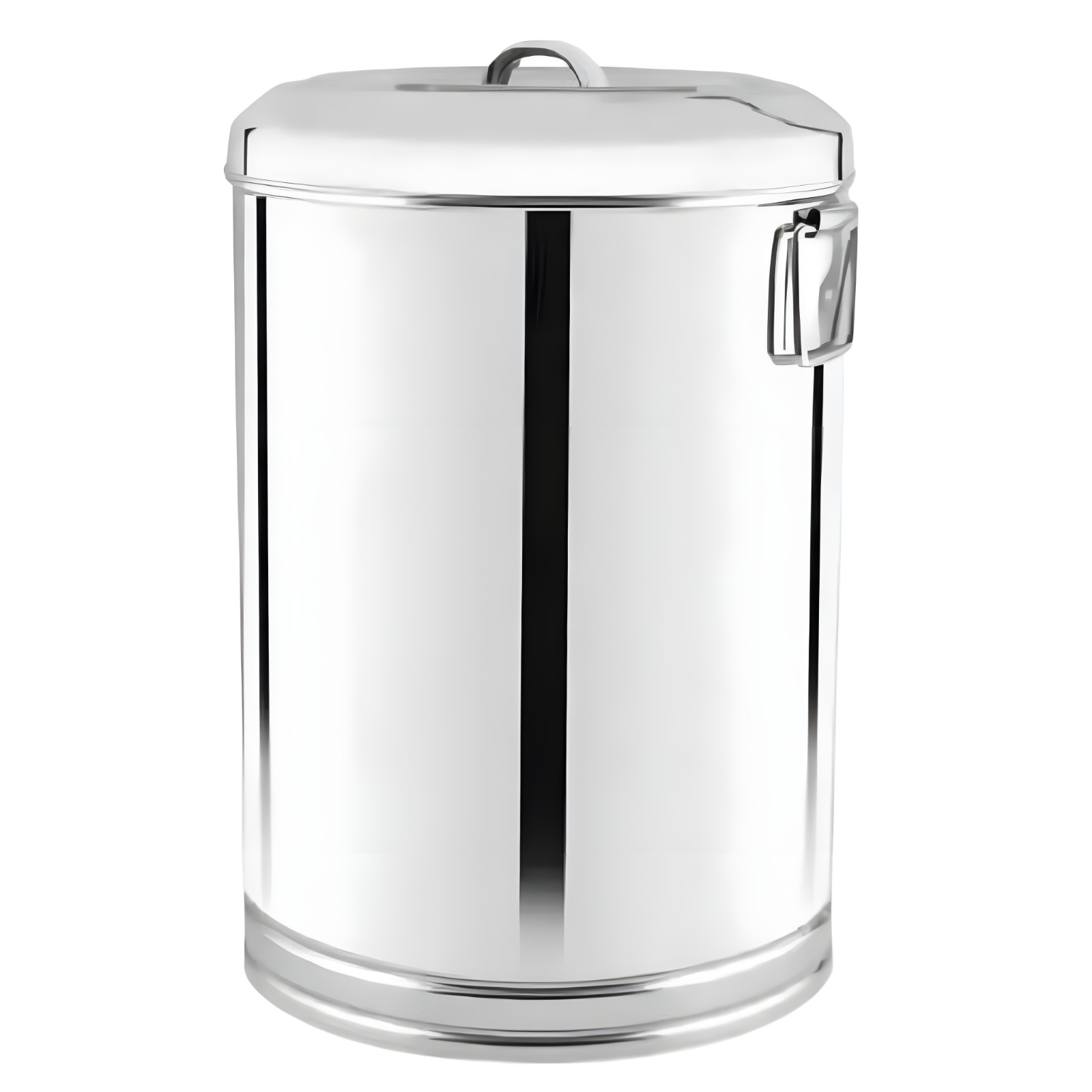 Its smooth cylindrical body provides ample storage capacity, while the strong rolled rim ensures easy handling and added strength. The sturdy base offers stability, and the mirror polish finish enhances its shine and long-lasting performance. Made from heavy-gauge stainless steel, it is rust-resistant and built for extended use.