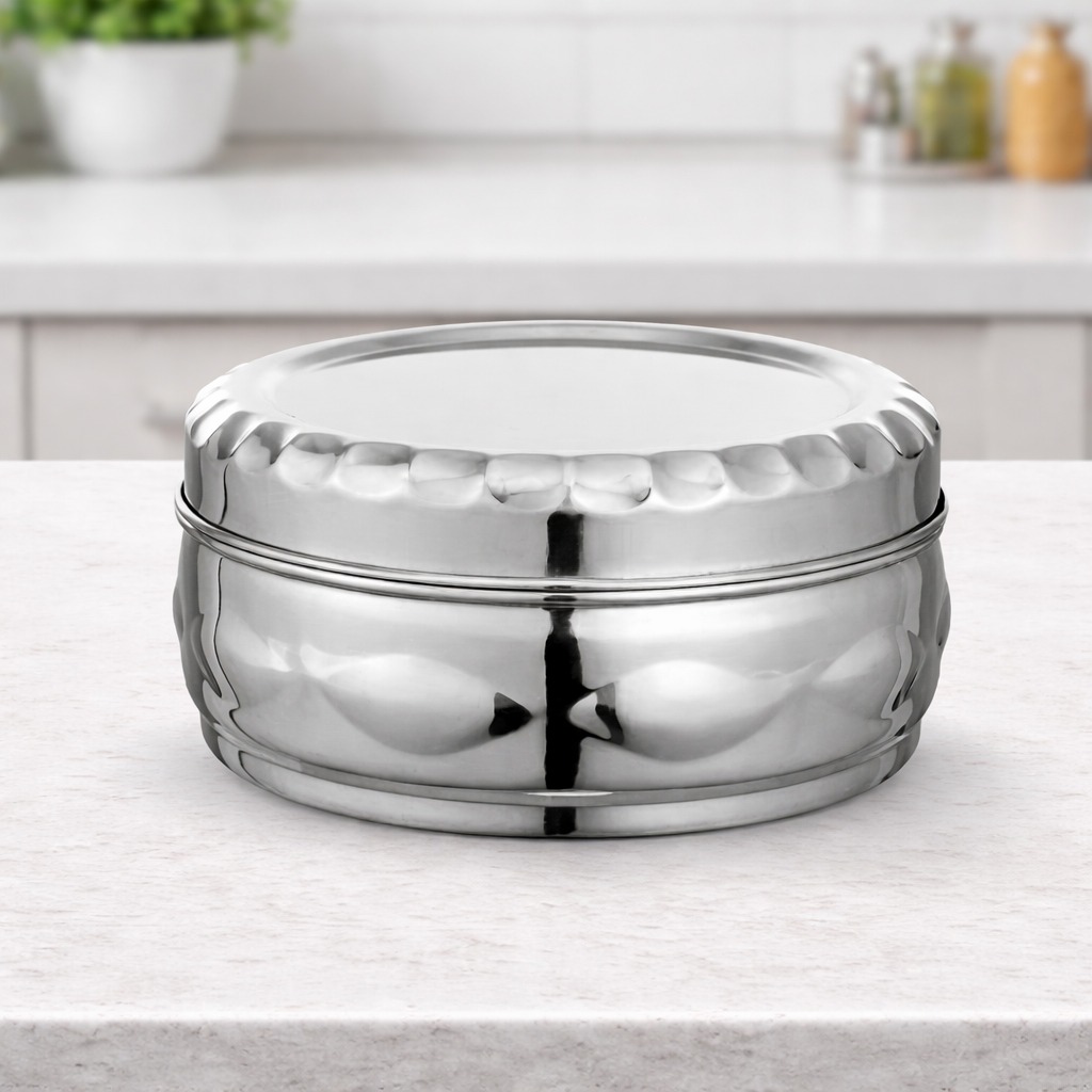 The Sorabh Magic Dabba is a premium stainless steel storage container designed for secure and hygienic food storage. Crafted from high-quality stainless steel, it offers excellent durability and long-lasting performance. Its smart and practical design makes it ideal for storing a variety of food items while keeping them fresh. Perfect for daily kitchen use, it combines functionality with a clean and elegant finish.