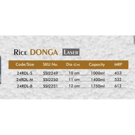 The Sorabh Rice Donga (Laser) is a premium stainless steel serving bowl designed for stylish and hygienic food presentation. Made from high-quality stainless steel, it ensures durability and long-lasting performance. The elegant laser-etched design enhances its appearance, making it a perfect addition to your dining table for both everyday meals and special occasions.