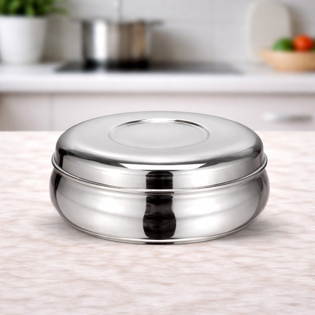 The Sorabh Lotus Dabba is a premium stainless steel storage container designed for hygienic and organized food storage. Crafted from high-quality stainless steel, it ensures durability, rust resistance, and long-lasting performance.