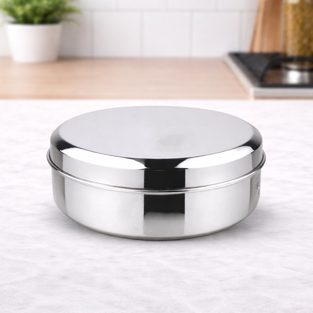 The Sorabh Madrasi Dabba (Plain) is a premium stainless steel storage container designed for hygienic and long-lasting food storage. Crafted from high-quality stainless steel, it ensures durability, rust resistance, and everyday reliability.